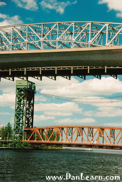 canal: Queen Elizabeth Way (foreground, overpasses), and Eastport Dr.